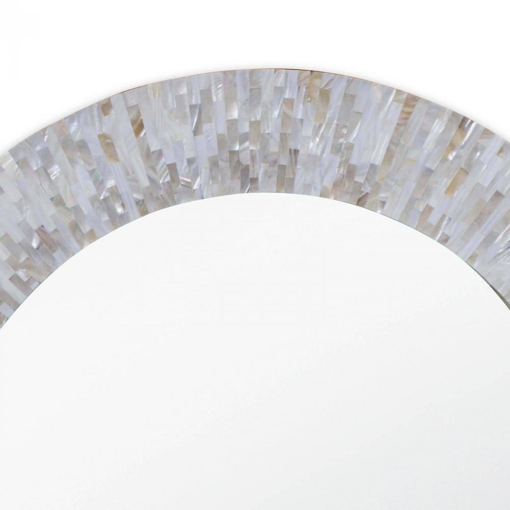 Ivory mother-of-pearl edges surround this round modern mirror, lending a touch of subtle iridescence and natural beauty. This versatile round mirror can be hung alone or mixed with other artwork for an instant gallery wall.