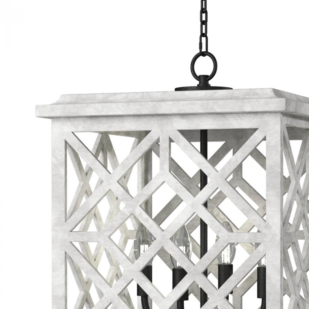 Regina Andrew Chatham Wood Lantern (White); Dimensions 17.5W x 26H x 17.5D; Uses four maximum 60 Watt E12 Base Bulbs (Not Included)