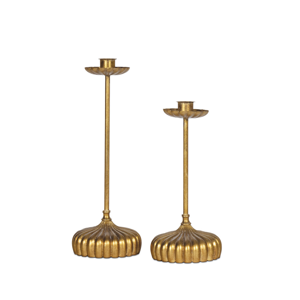 Introduce classic elegance to your home with the Clove Candle Holder Set. Each holder boasts antique-style candle cups with intricate bobeche detailing and dramatic antiqued gold bases. The varying heights create a balanced, multi-level effect, adding a re