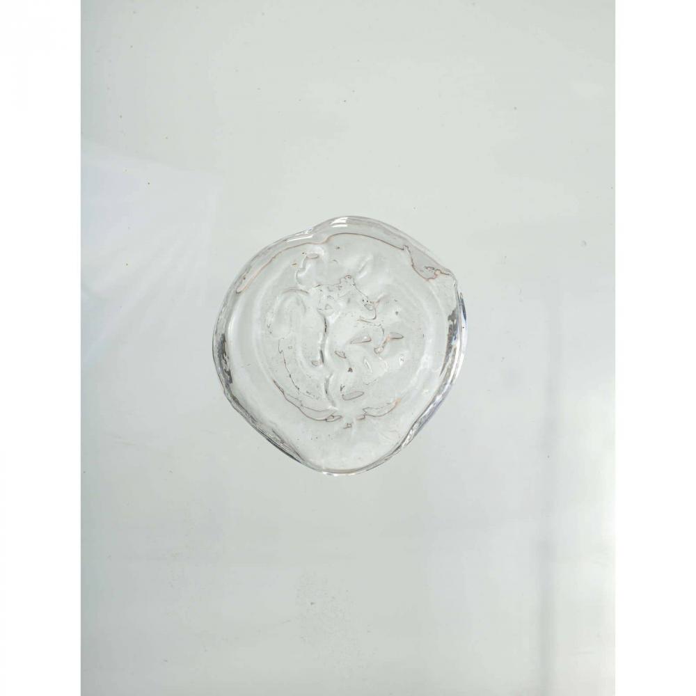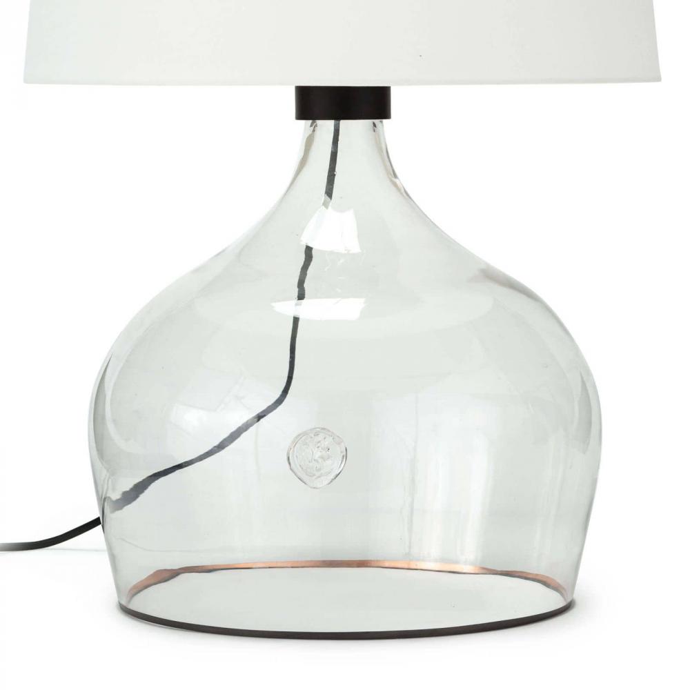 Add refreshing character to your living room, dining room, or bedroom with this beautifully constructed glass vessel lamp. Thoughtful detailing such as its black cloth cord, copper stripe inside the base, and glass medallion make this lamp the perfect bala