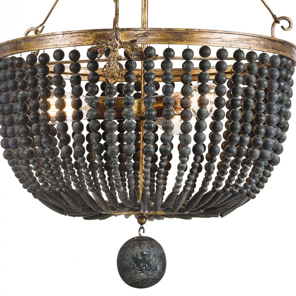 Black-finished wood beads and an antique gold finish play well together in Fabian. Vintage accents on the frame provide a touch of gilded opulence and a large wooden finial balances the whole design. Install above a dining room table for a casual cool stat