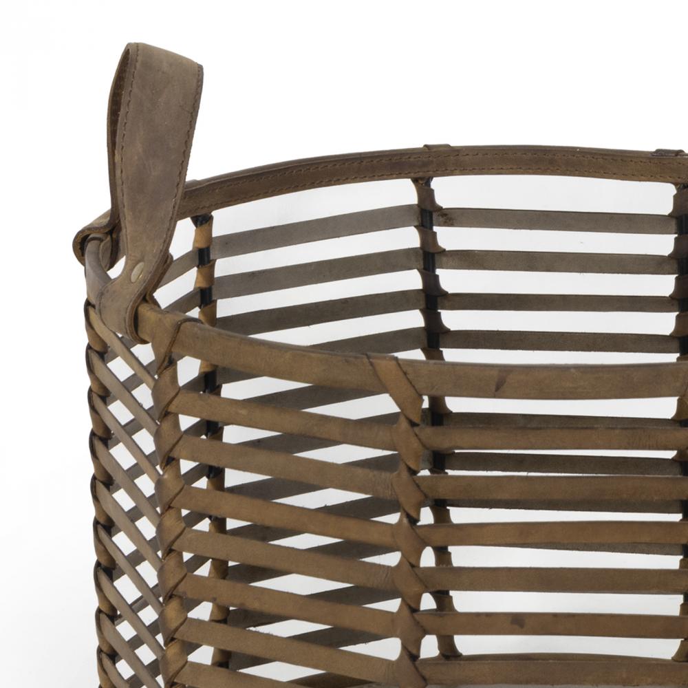 Blending form and function, this handsome basket is woven by hand from sturdy natural leather. The Finn is the perfect functional decor piece for your home. This basket can stand alone as sculptural decor thanks to the intricate pattern woven into its leat