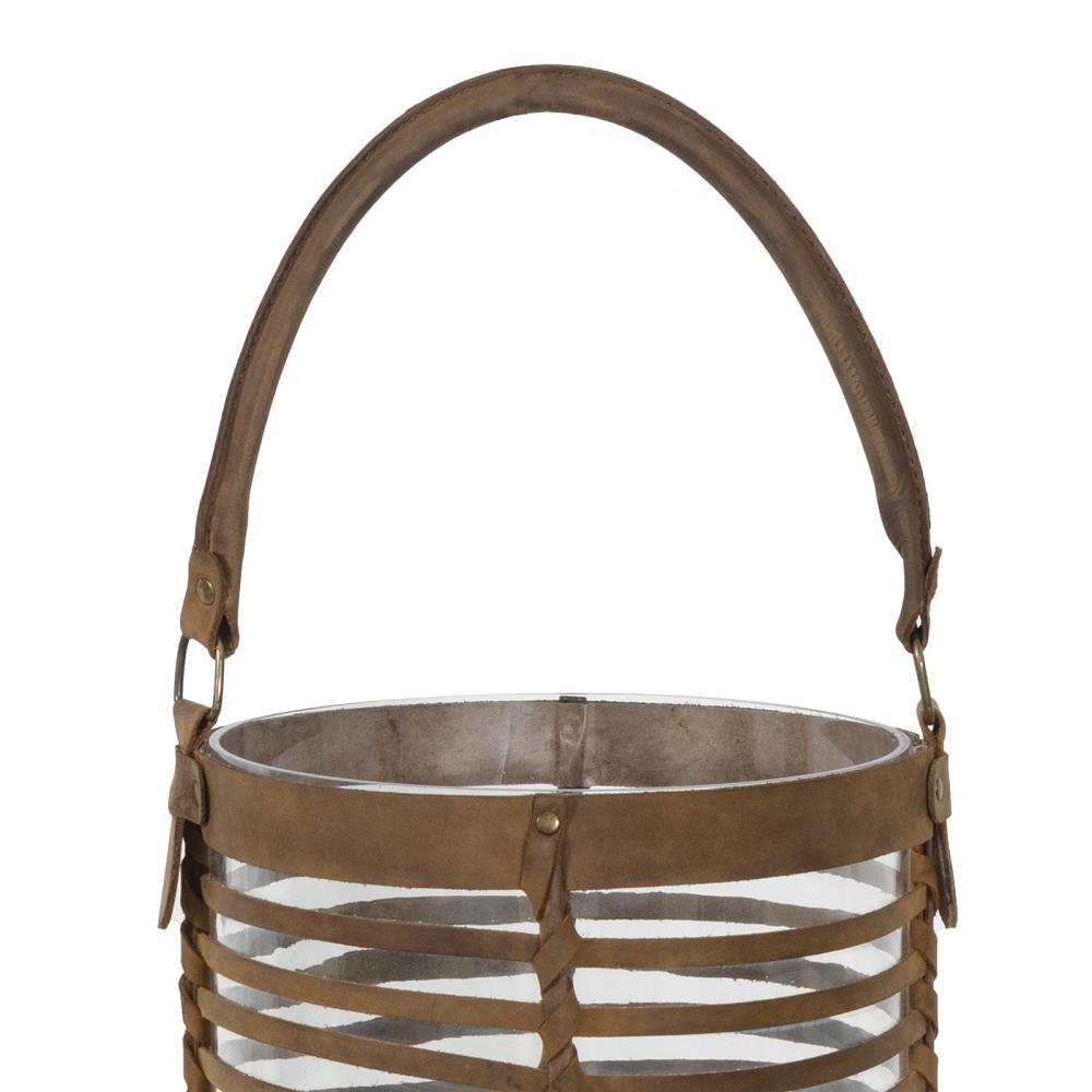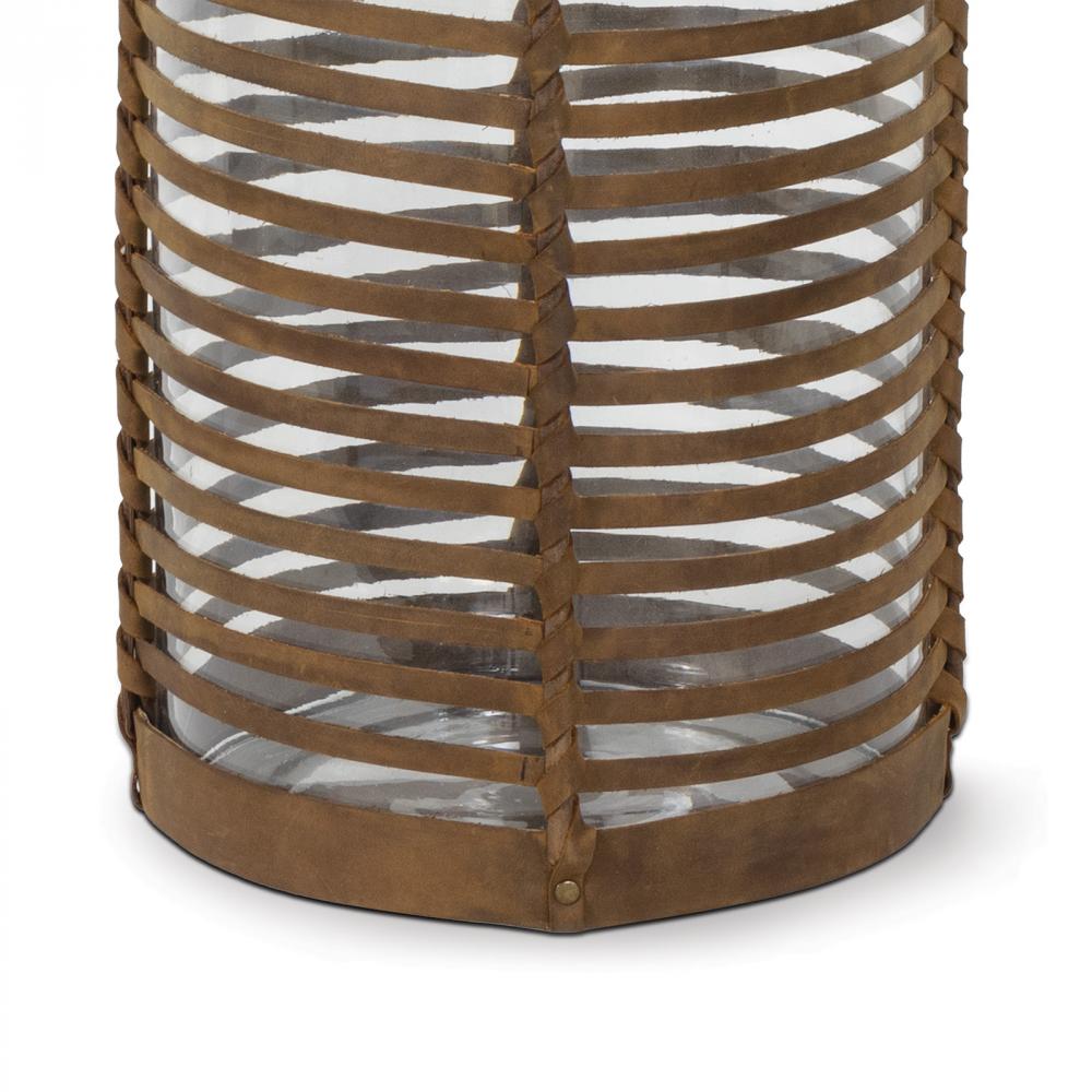 A classic design with a modern edge, the Finn Hurricane is an instant favorite. Let the soft glow of a flickering candle shine through its woven leather base. To create a balanced statement in your home, pair the Finn with its smaller counterpart on a coff