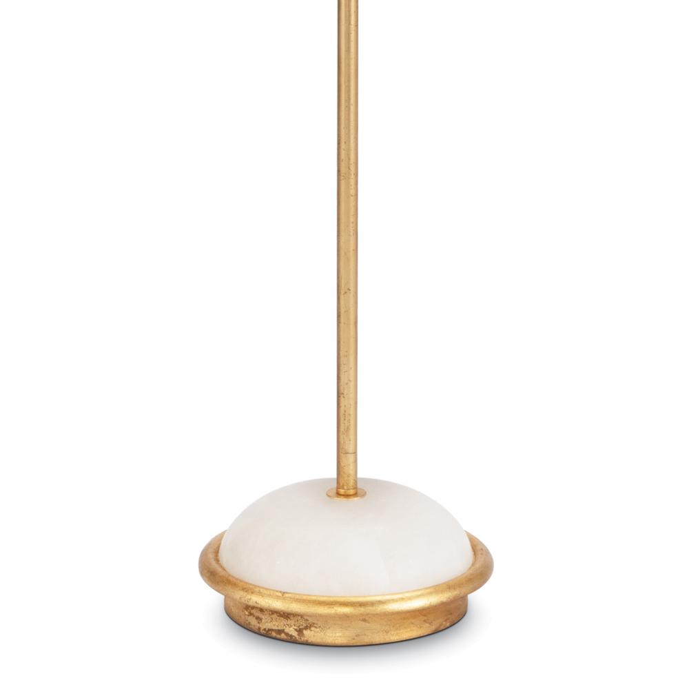 Add elegance and ambiance to your home with the Fisher Floor Lamp. With a gold-leaf finished body and a natural alabaster stone base, this floor lamp is simply beautiful. A natural linen shade completes the refined look, atop a delicate candle cup accent.