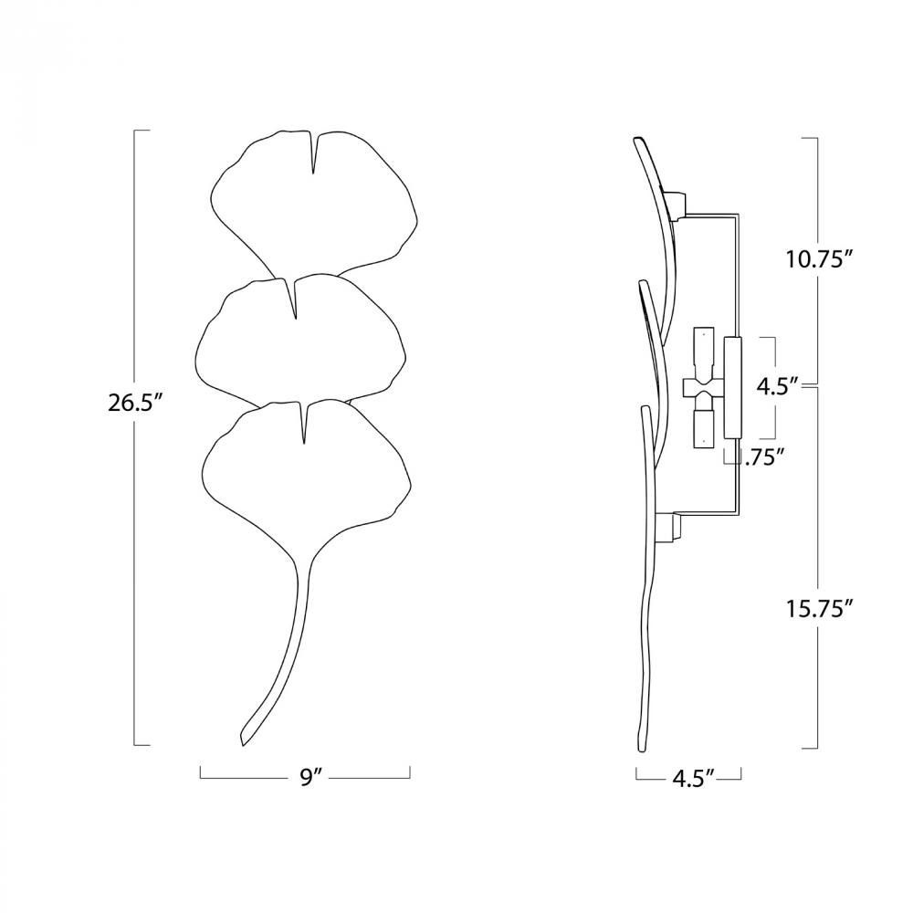 Regina Andrew Ginkgo Sconce; Dimensions 9W x 26.5H x 4.5D; Uses two maximum 40 Watt E12 Base Bulbs (Not Included)