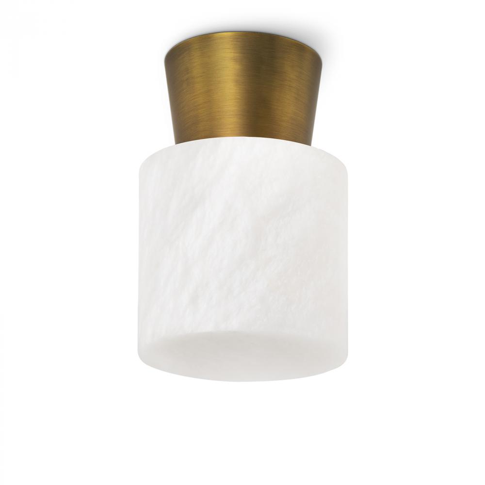 Regina Andrew Hazel Alabaster Flush Mount (Natural Brass); Dimensions 5.75W x 8.5H x 5.75D; Uses one maximum 3.5 Watt G9 Base Bulb (Included)