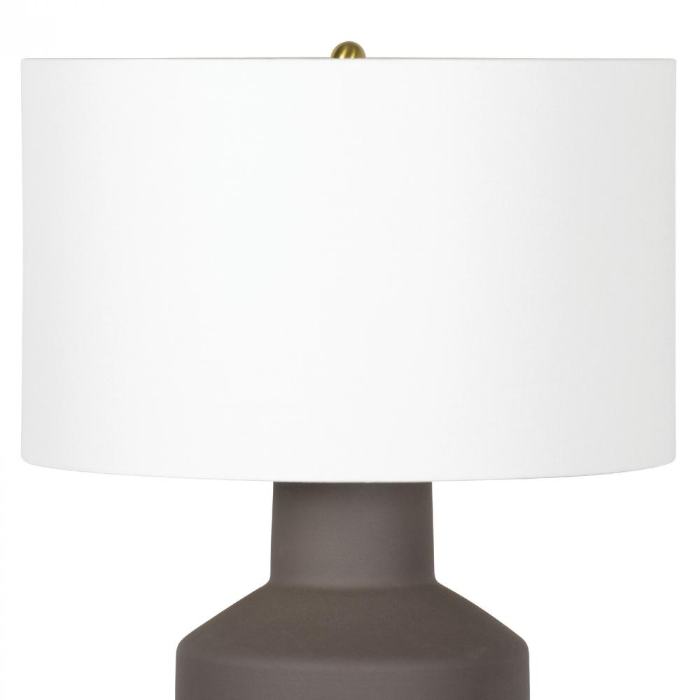 The matte dark brown-black finish and shape of the Lewis Ceramic Table Lamp underscores its commanding presence. The sculptural base combines the look of modern pottery with a solid color for a true statement piece.