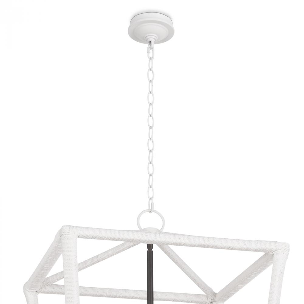A twist on the traditional lantern, the Luella has a uniquely textured white finish. Elegant, blackened brass candelabra lighting on the interior creates an unexpected statement in your foyer, living room, or dining room.