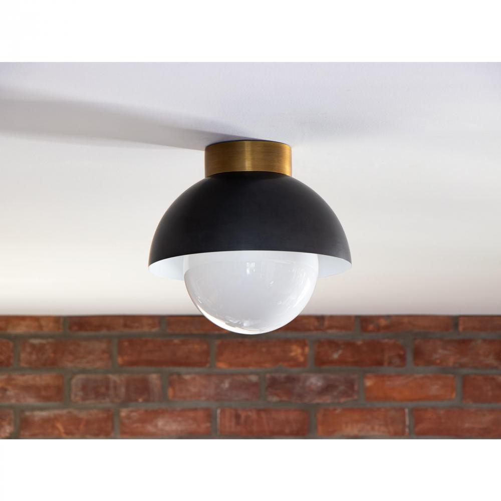 Our Montreux Flush Mount has a beautiful, minimalistic silhouette with its metal shade. The large, opal white glass globe creates a soft glow when illuminated. Add this modern fixture to your neutral nest, modern farmhouse, or urban loft.