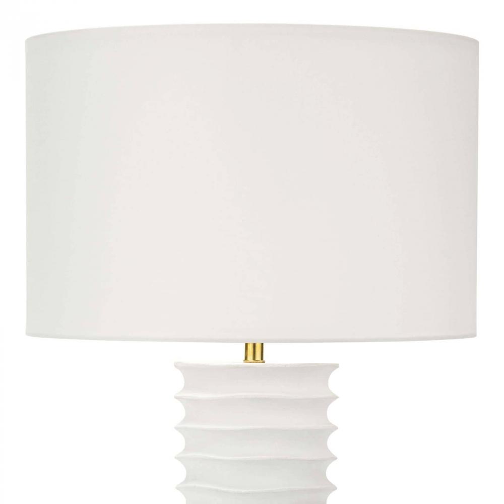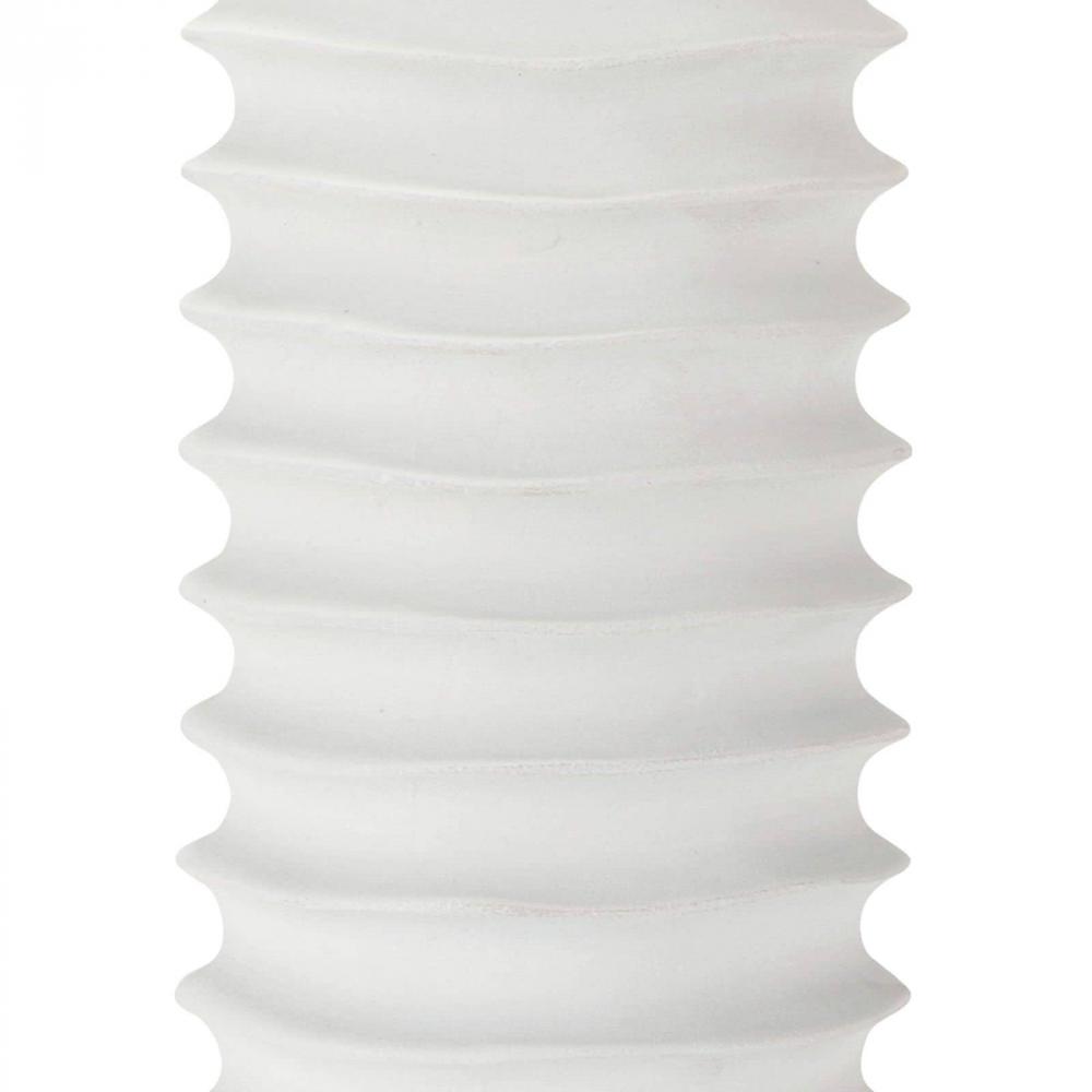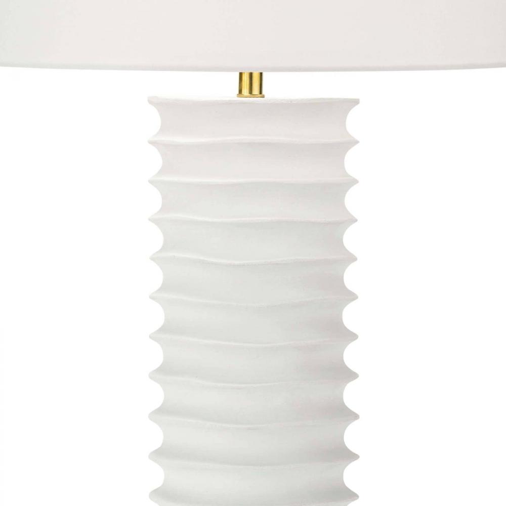 A tactile white finish on the Nabu metal column table lamp accentuates its accordion-like base. Its simple, yet artisan feel would make for a beautiful welcome in an entryway or in a pair as bedside lighting.