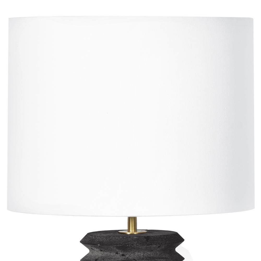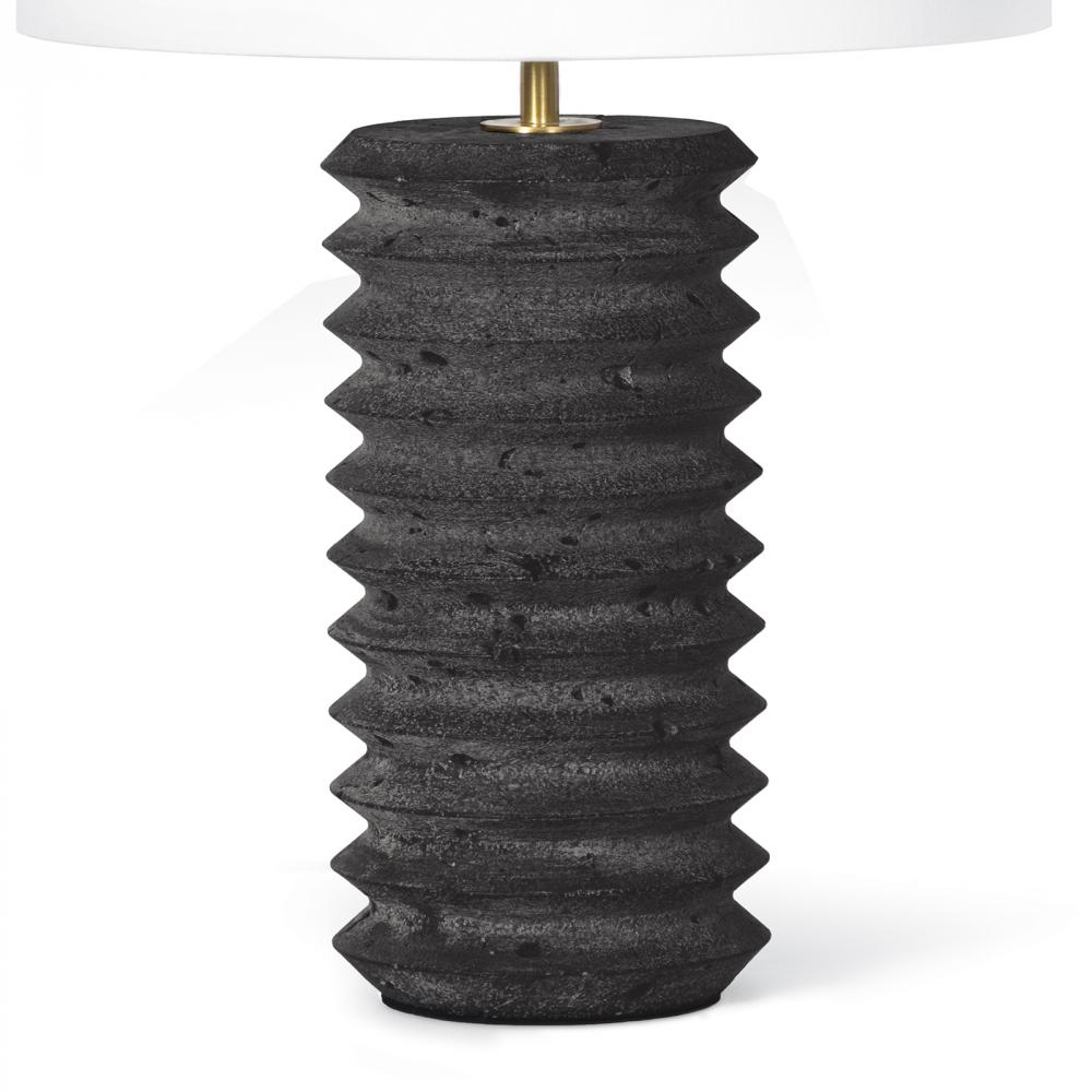 With its striking accordion-like silhouette and deep grooves, the Noir Column Lamp will make a bold statement in any room. The black travertine stone body is paired with a natural linen shade. Place one on an end table in your living room or style a pair o