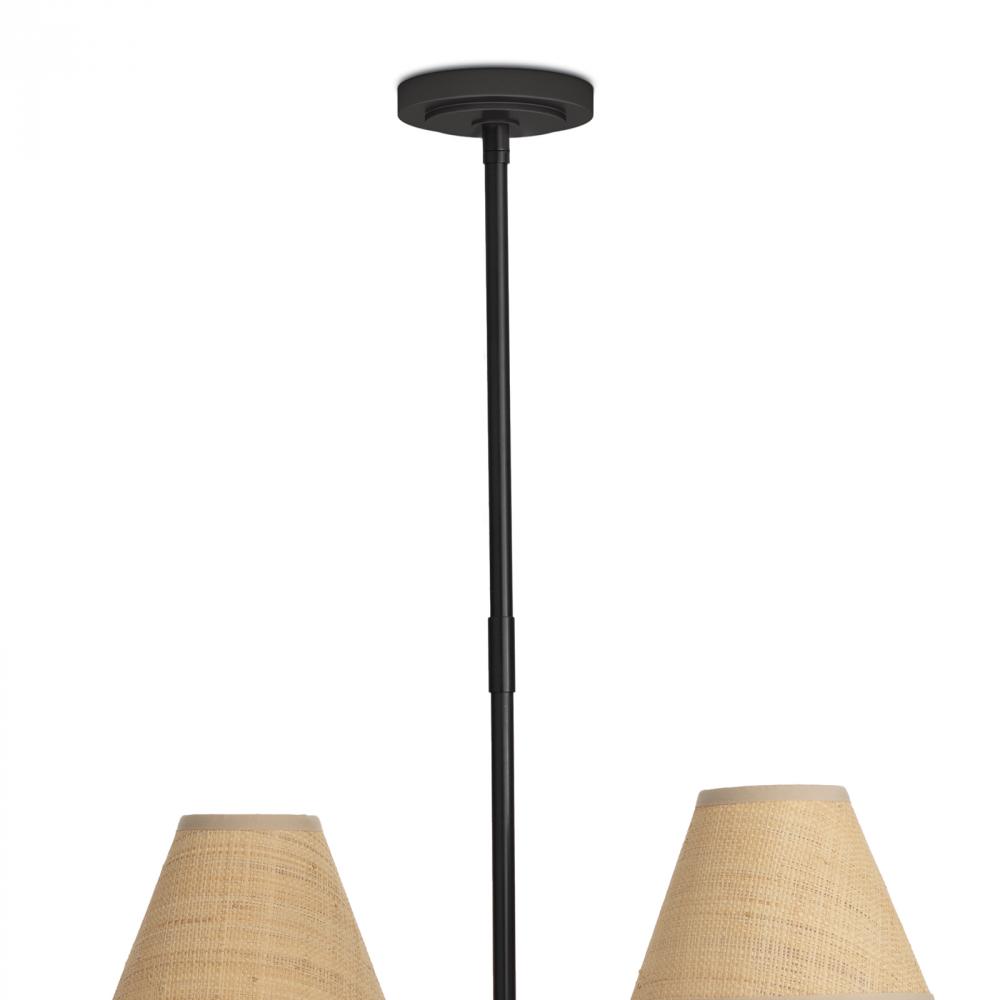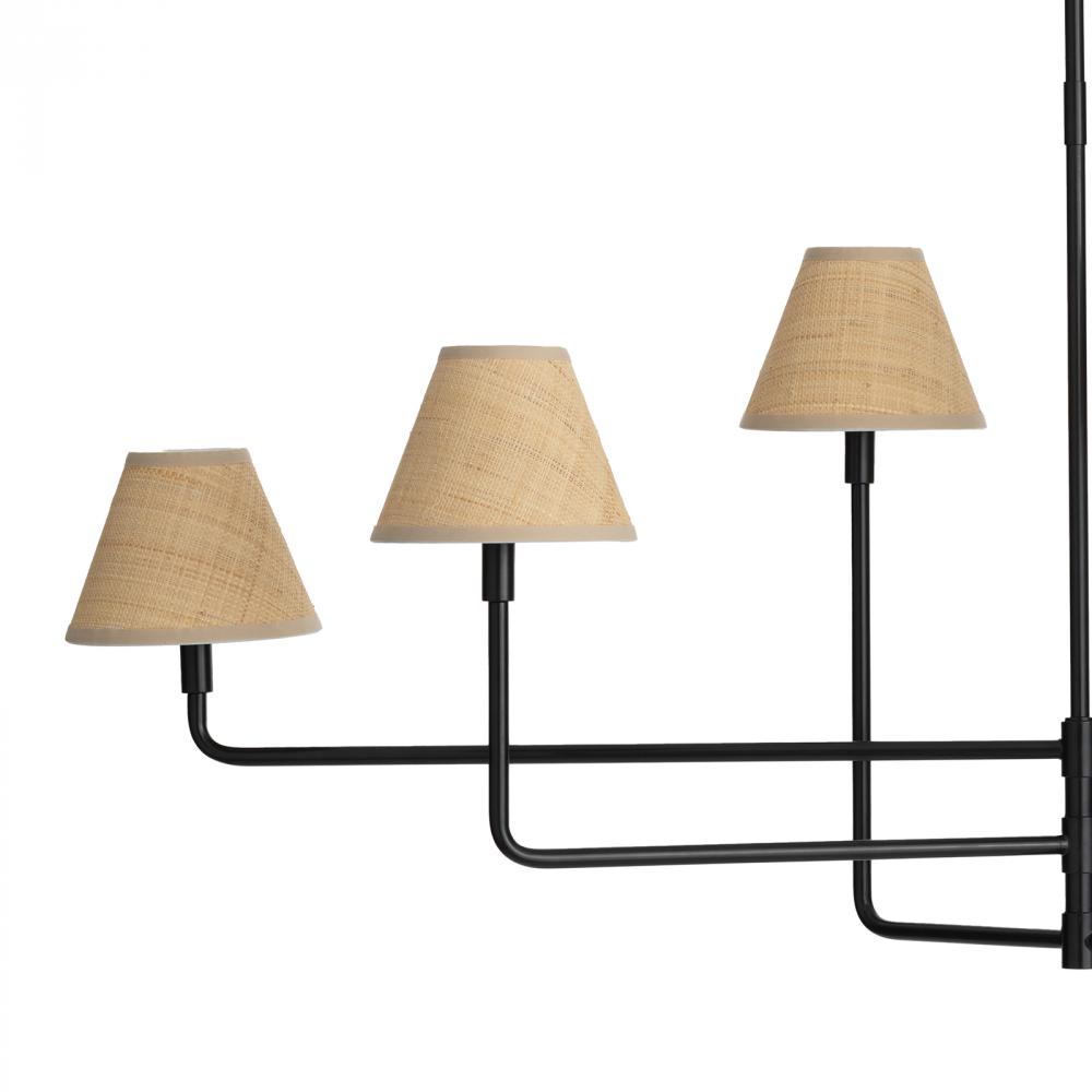 Regina Andrew Polly Metal Chandelier (Blackened Brass with Rattan Shade); Dimensions 63.75W x 28.25H x 8D; Uses 6 maximum 60 Watt E12 Base Bulbs (Not Included)