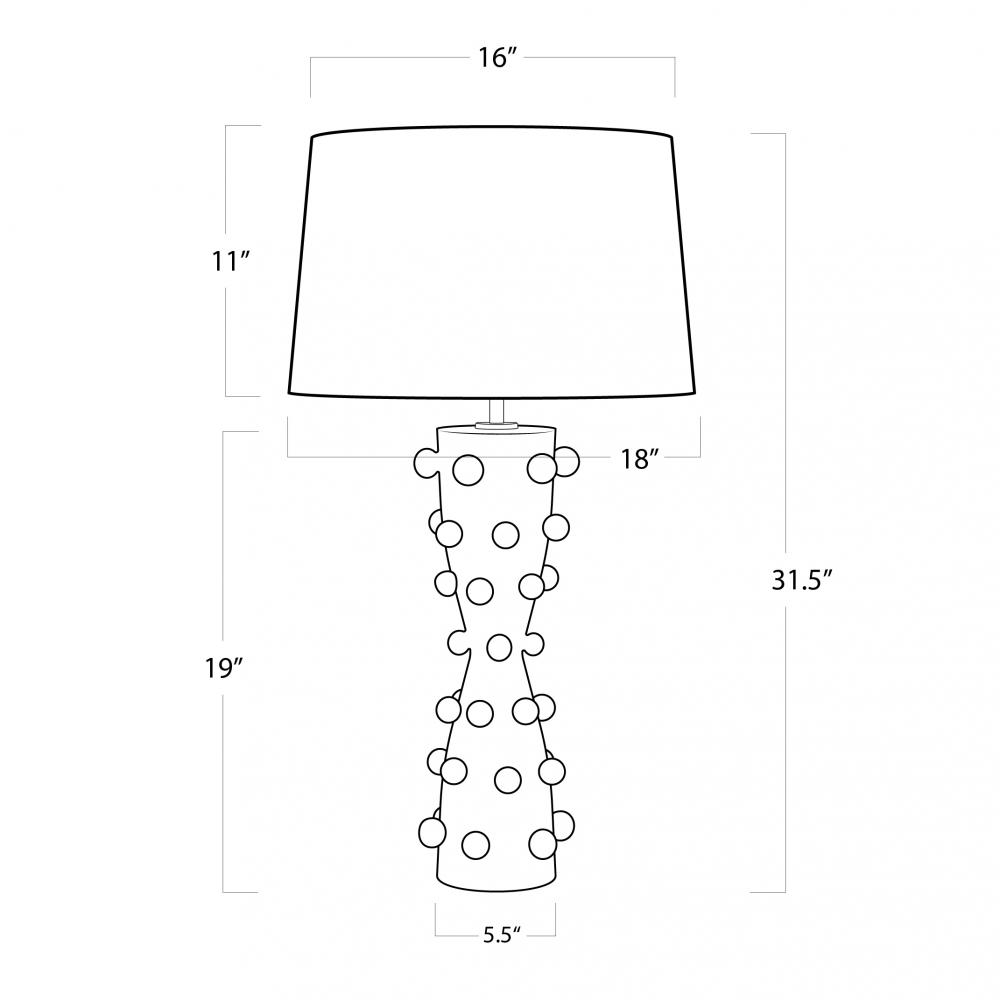 Regina Andrew Pom Pom Ceramic Table Lamp (White); Dimensions 18W x 32.75H x 18D; Uses one maximum 150 Watt E26 Base Bulb (Not Included)