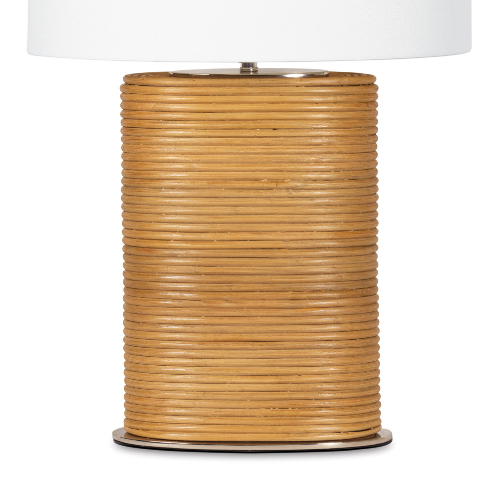 The Resort Bedside Table Lamp redefines style with its distinctive design featuring a bamboo-wrapped base, adding a unique texture and detail to its silhouette. This lamp is more than just a source of light; it's a statement piece that effortlessly inf