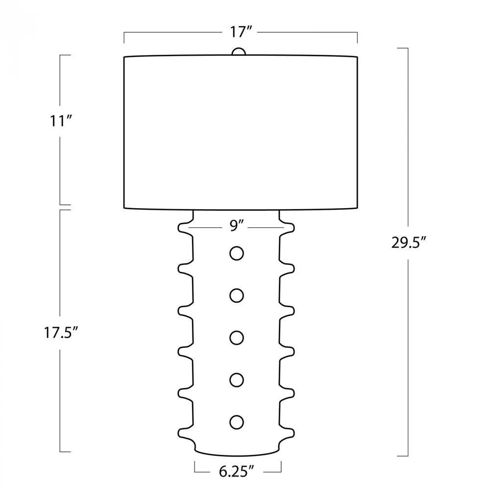 Regina Andrew Spruce Ceramic Table Lamp; Dimensions 17W x 30.25H x 17D; Uses one maximum 150 Watt E26 Base Bulb (Not Included)