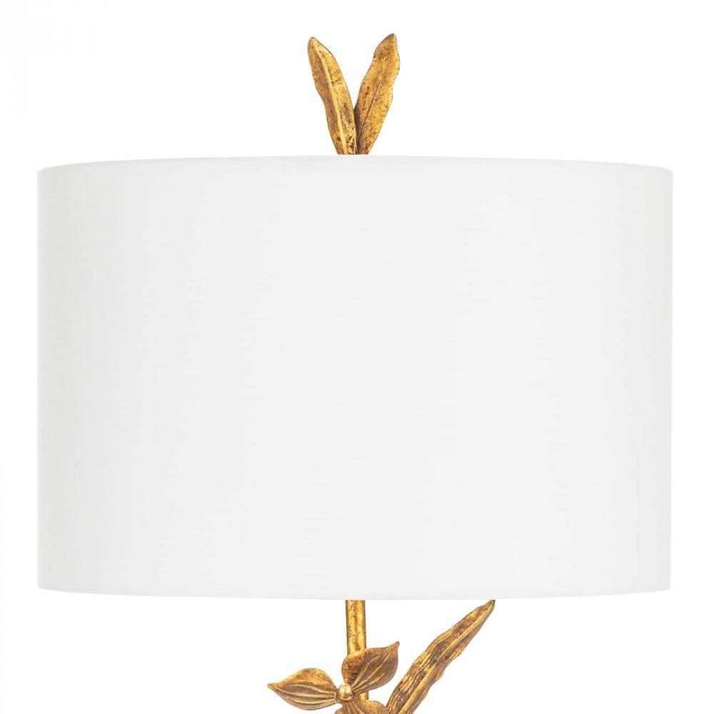 Balancing Old World elegance with rustic charm, each branch of the Trillium buffet lamp is cast and gilded in an antique gold leaf finish. Place as a pair on either end of a buffet or entry table to create a uniquely dramatic statement. When lit, this buff
