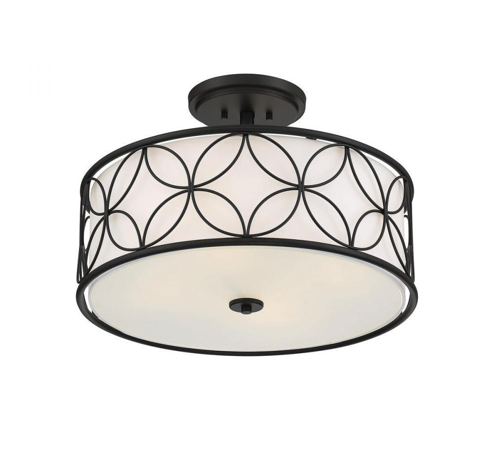 A beautiful geometric pattern adorns this Savoy House Reid 4-light ceiling light. Finished in matte black, the pattern pops brightly against the inner white fabric shade. Reid is perfect for boosting the illumination in any room, even smaller spaces. It is 13.5" in height and 20" in diameter. It uses four standard size bulbs of up to 60 watts per bulb.
