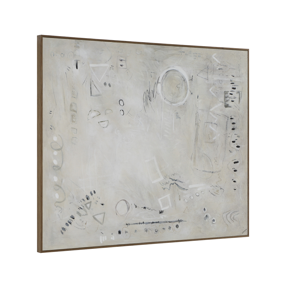 Minimalist in its design, this abstract wall art has a Paul Klee vibe that will bring a modern art gallery look to any stylish interior. Framed in medium walnut, its high-quality canvas features texture and tonal shades for a look that blends seamlessly into your design plans. And with 2-way hanging, you have the flexibility to hang this oversized painting anywhere and any way you like.