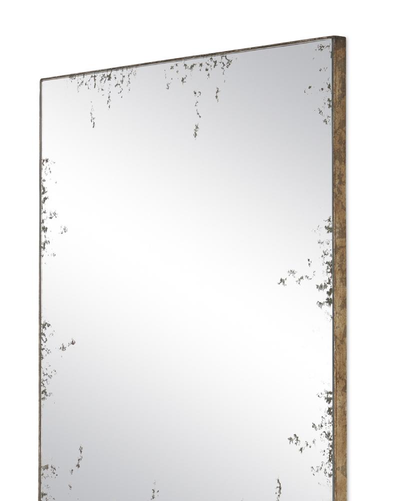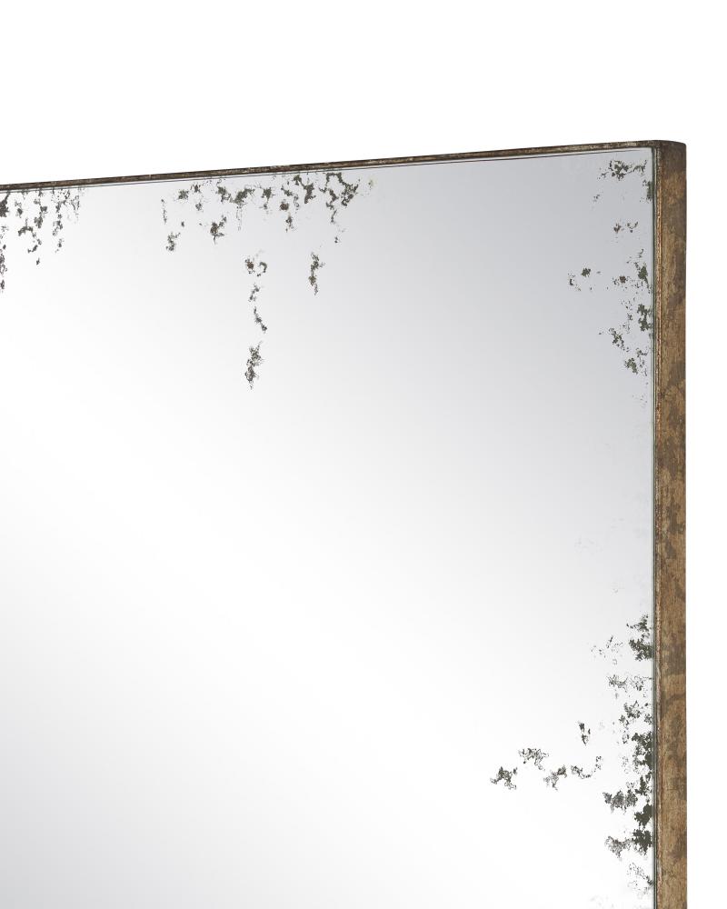 With its frame pulled back to create a simplified silhouette, the antiqued surface of the Rene Rectangular Mirror is all the eye sees. The metal echoes the tone of the distressed edges of the mirror where they meet.