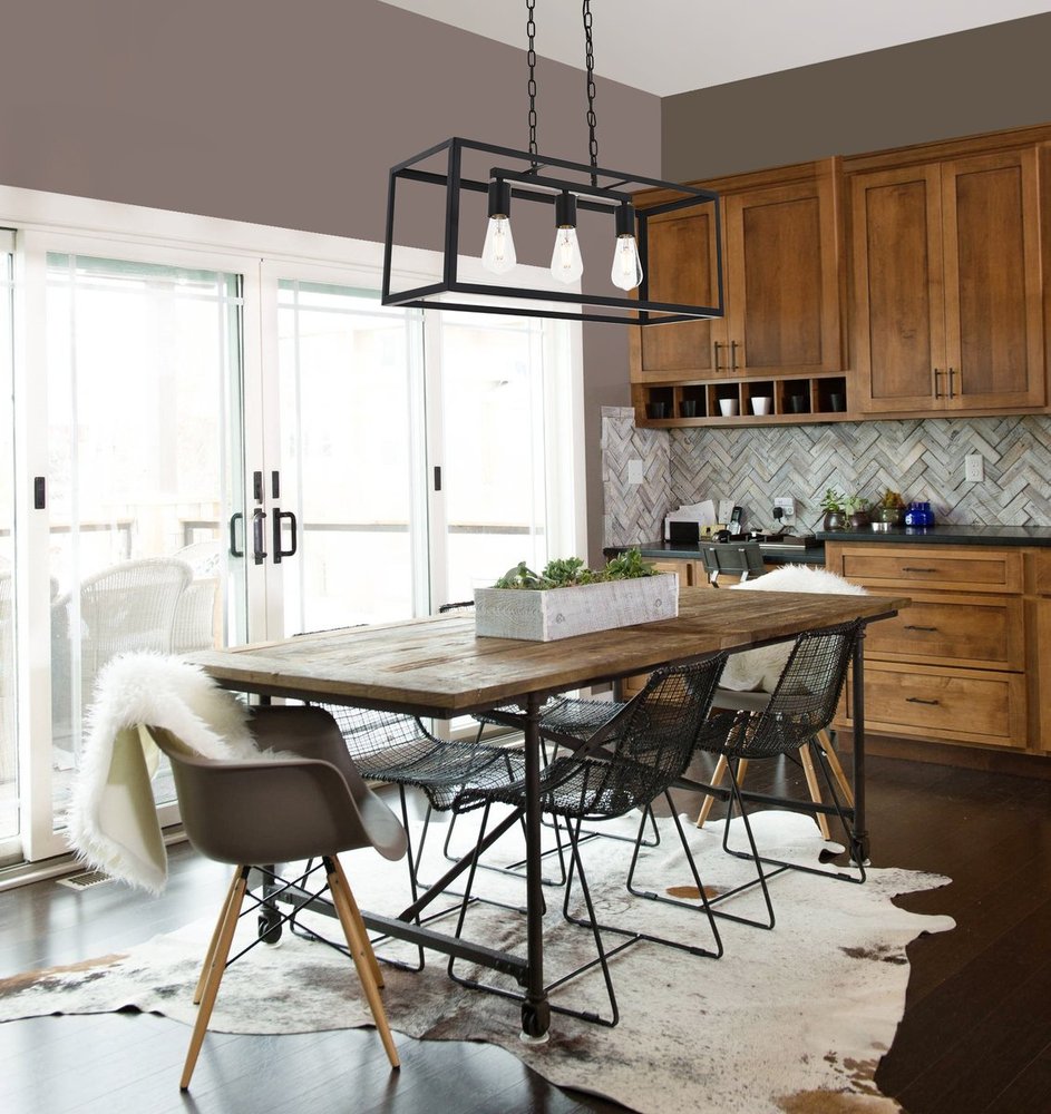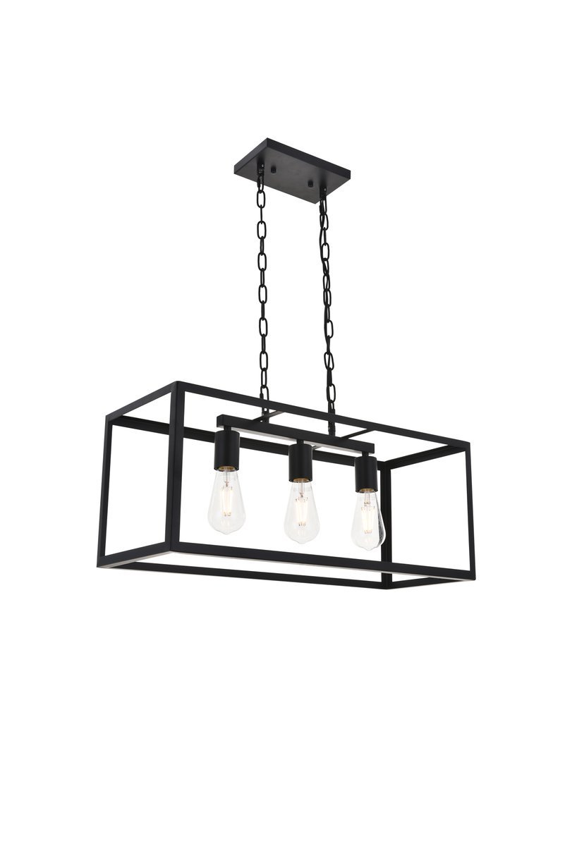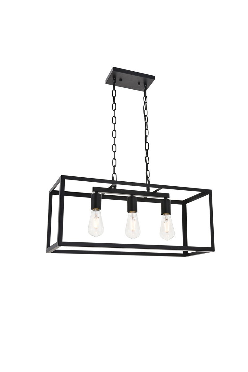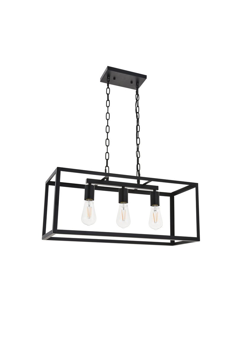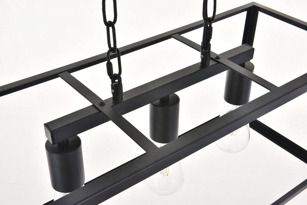 Modern black finish 3-light pendant with an open geometric frame