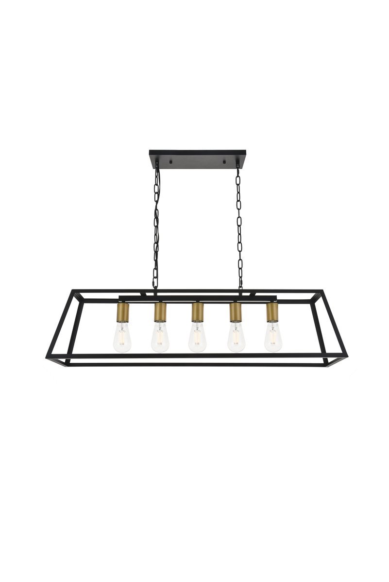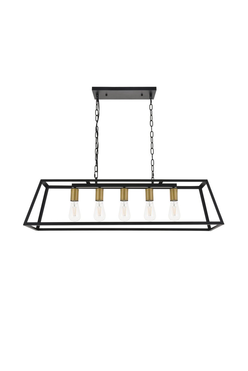 Modern two-toned brass and black finish 5-light pendant with an open geometric frame