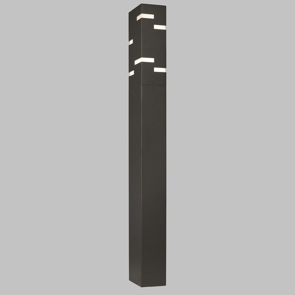 The uniquely modern Revel outdoor bollard light by Sean Lavin features a sleek metal surface that is laser-cut with horizontal slots which allow the LED light to shine through an inner white diffuser. The subtle, ambient glow enhances way-finding on paths or in landscape applications. The Revel bollard features a universal driver with built-in surge protection. Available in modern finish options.