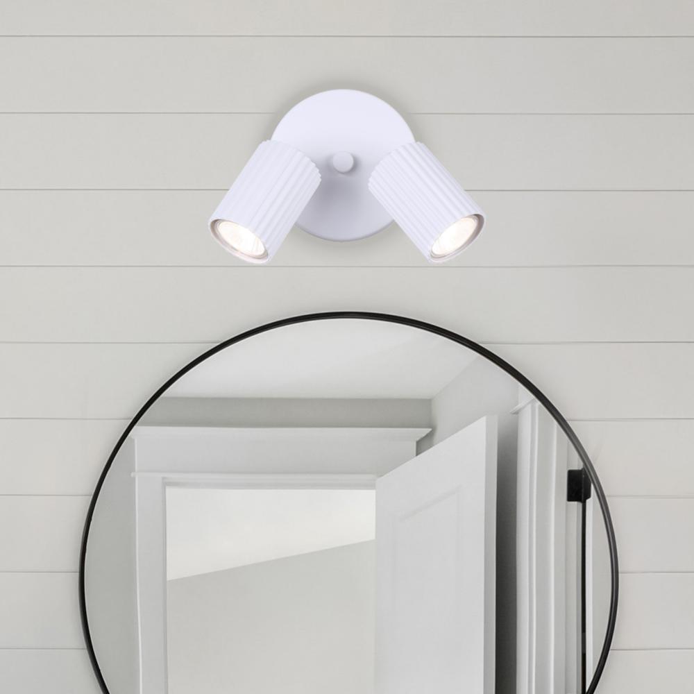 Enhance your lighting with REXTON, a versatile 2 Light Ceiling or Wall fixture finished in Matte White Color. With a sleek design and adjustable heads, REXTON allows you to direct light precisely where you need it. Designed for use with Type GU10 bulbs, it offers both style and functionality. Measuring 5.5 inches in width, 5.75 inches in height, and 5 inches in depth, REXTON is perfect for illuminating kitchens, hallways, or offices. Easy Connect Included ensures hassle-free installation, making REXTON a practical and stylish lighting solution for any space