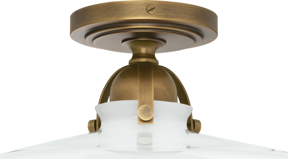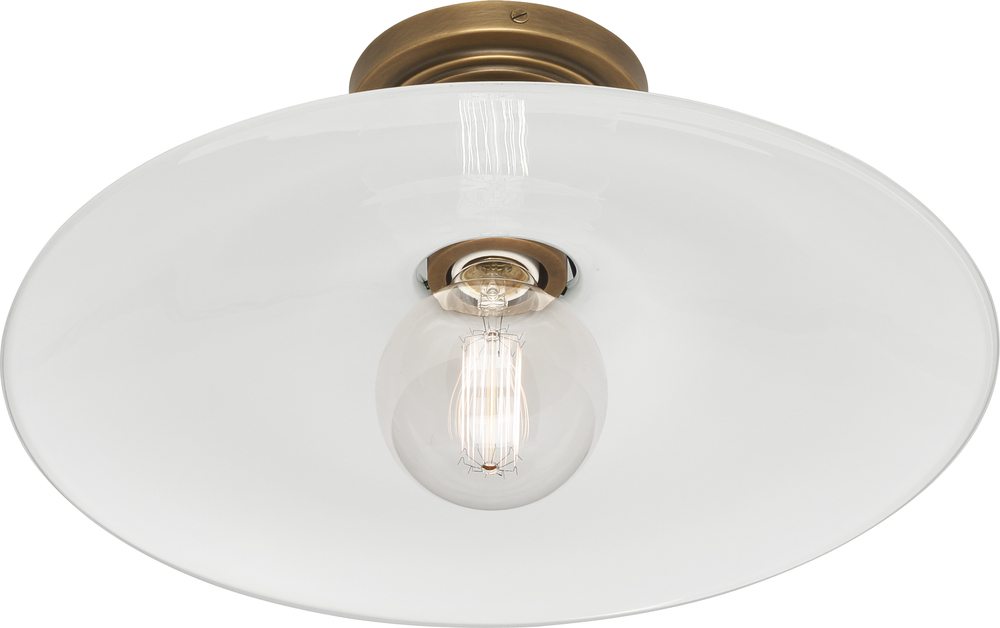 Minimal and ethereal, the Arial collection has a touch of industrial style that you will love. Sleek metal arms and knurled turn knobs provide interesting accents to the shallow frosted glass shade. These pieces are versatile and contemporary. - Warm Brass Rico Espinet Arial Flushmount with White Glass