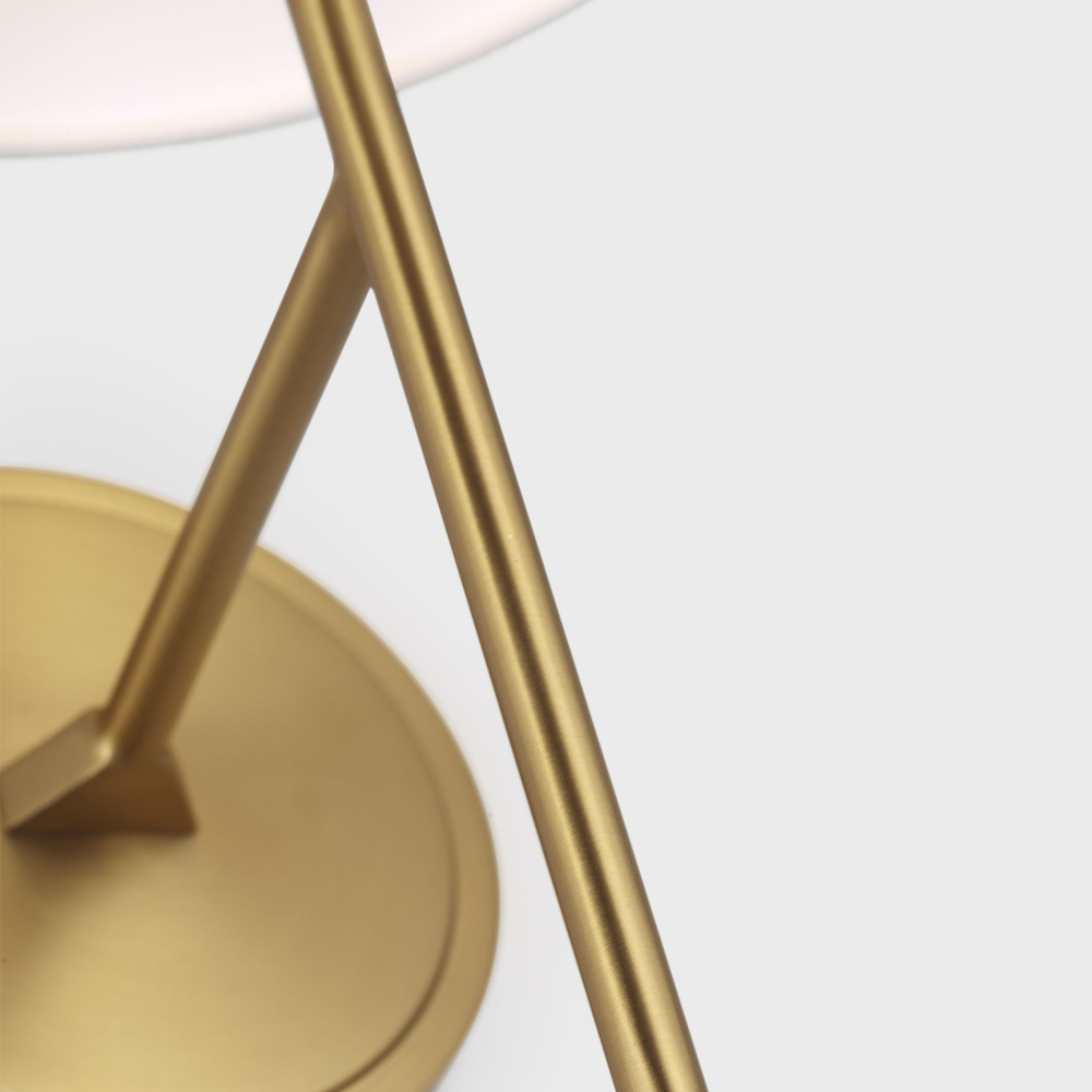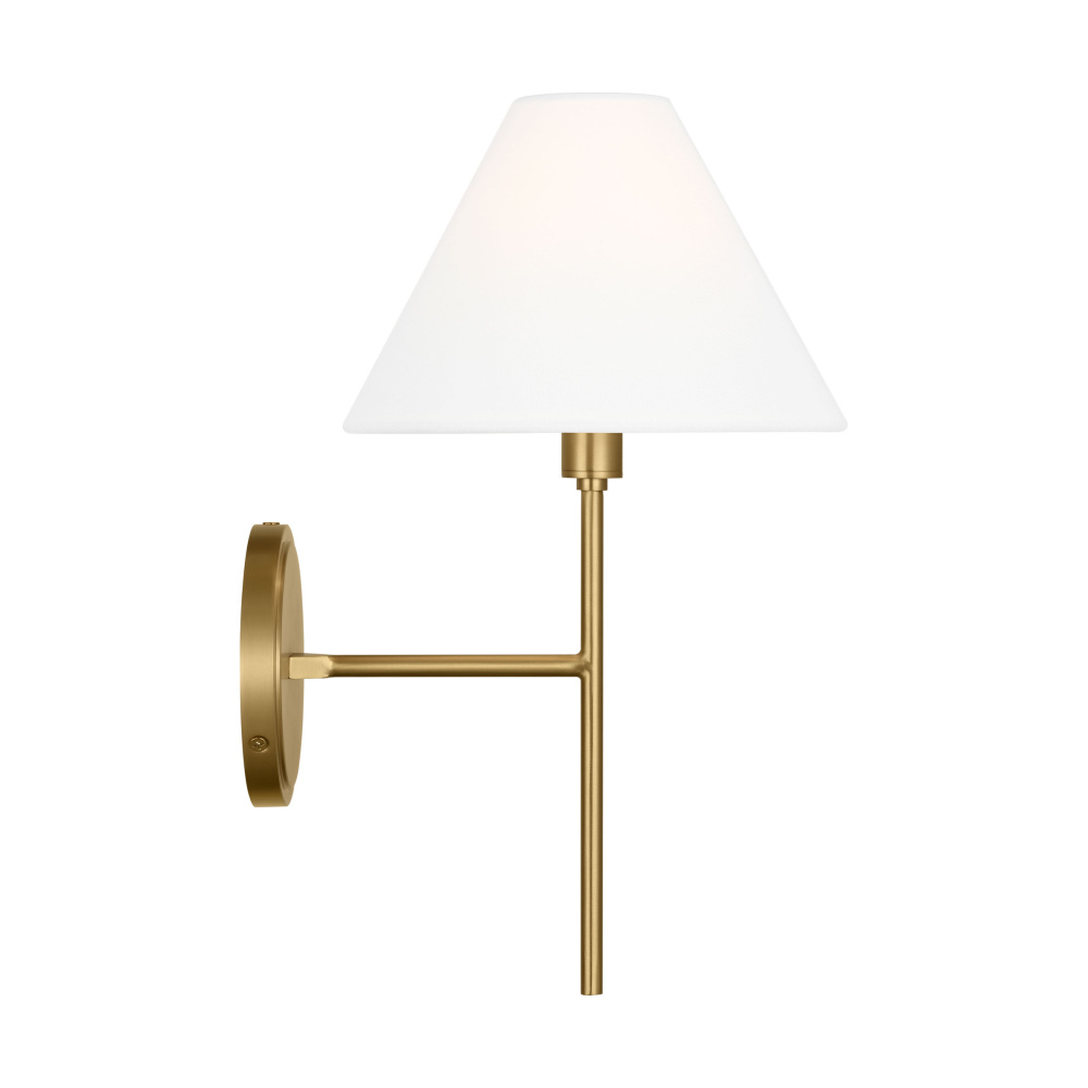 Crafted with Steel in a Burnished Brass finish with white linen fabric shade
