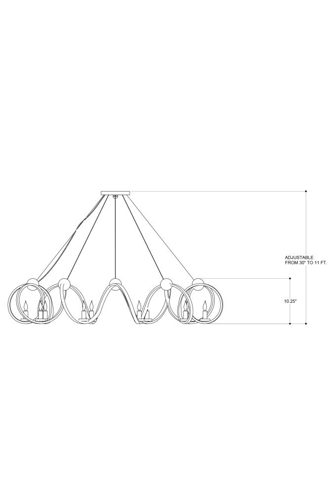 The Ringmaster Silver Chandelier is cold-forged and requires a team of strong men to achieve its stellar design. The contemporary silver leaf finish and ten lights provide the ultimate in illumination emanating from the undulant fixture. Adjustable from 30" to 132" with use of included chain/rod kit/cable. If your space calls for a longer drop, additional chain/rods/cable is available for purchase.