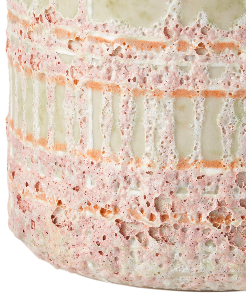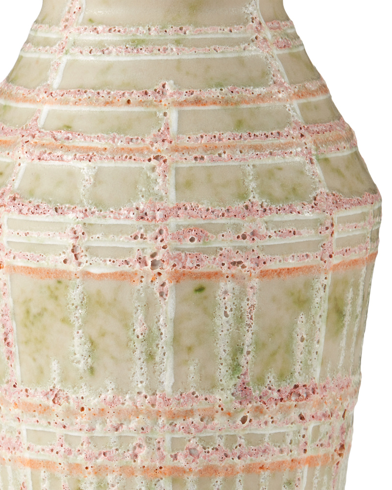 Inspired by an aerial view of rice fields, the geometrically rich patterning on the Riso Vase Set is carved into the ceramic surfaces of the tan vases. The blend of of different colors where the lines are scraped away gives these matte vessels an antiqued feel.