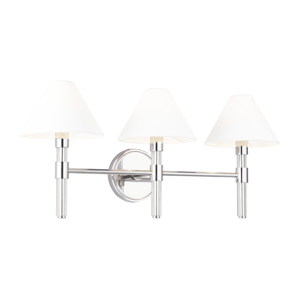 The Robert three light vanity fixture has strong clean lines of Lucite stems that elevate and support the paper empire shades in this shapely series.