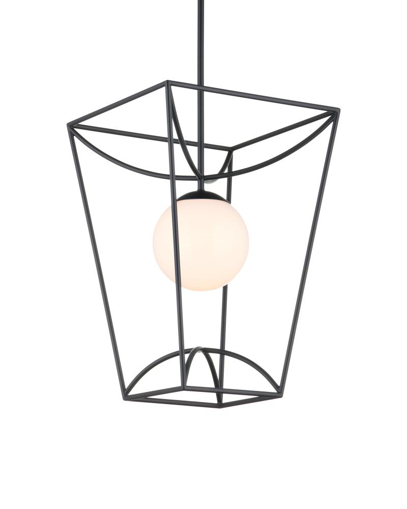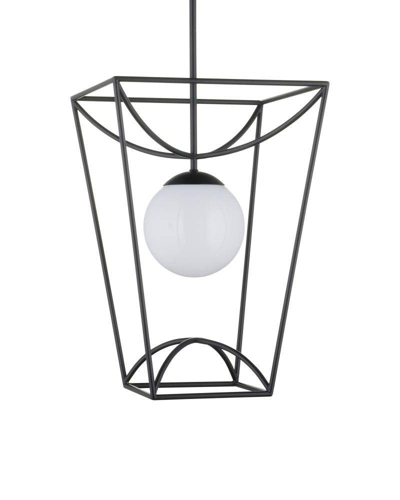 The Rochefort Small Lantern is an outdoor pendant with beautiful lines that subtly draw themselves into a lantern-like form. The black powder-coated finish makes it durable for exterior environments and contrasts the milky white glass globe it balances in its center. Whereas traditional lanterns may be limited to time-honored and transitional design aesthetics, the delicacy of this black lantern’s profile makes it fitting for mid-century modern homes and those that lean contemporary. Adjustable from 25.75" to 67.75" with use of included chain/rod kit/cable. If your space calls for a longer drop, additional chain/rods/cable is available for purchase.