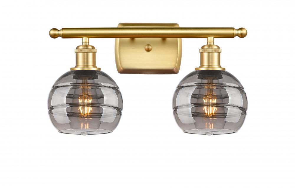 Rochester - 2 Light - 16 inch - Satin Gold - Light Smoke Shade - Bath Vanity Light