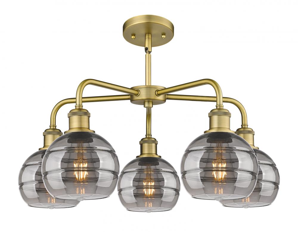 Rochester - 5 Light - 24 inch - Brushed Brass - Light Smoke Shade - Chandelier