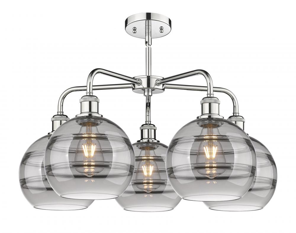 Rochester - 5 Light - 26 inch - Polished Chrome - Light Smoke Shade - Chandelier