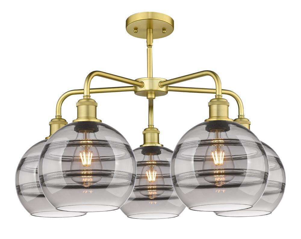 Rochester - 5 Light - 26 inch - Satin Gold - Light Smoke Shade - Chandelier
