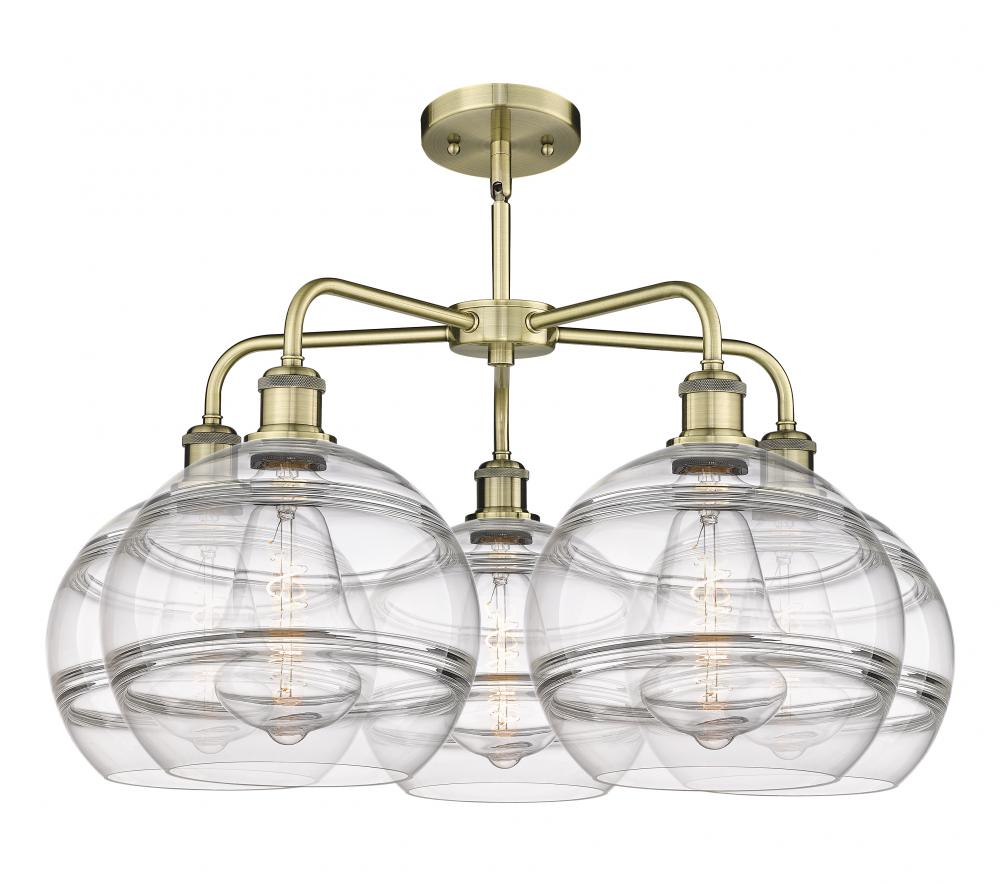 The Rochester Series is meticulously handcrafted, showcasing exquisite glass band detailing. These bands are the result of a complex and delicate glassblowing technique, making each pendant truly one-of-a-kind. While the exterior of the glass shade has a s