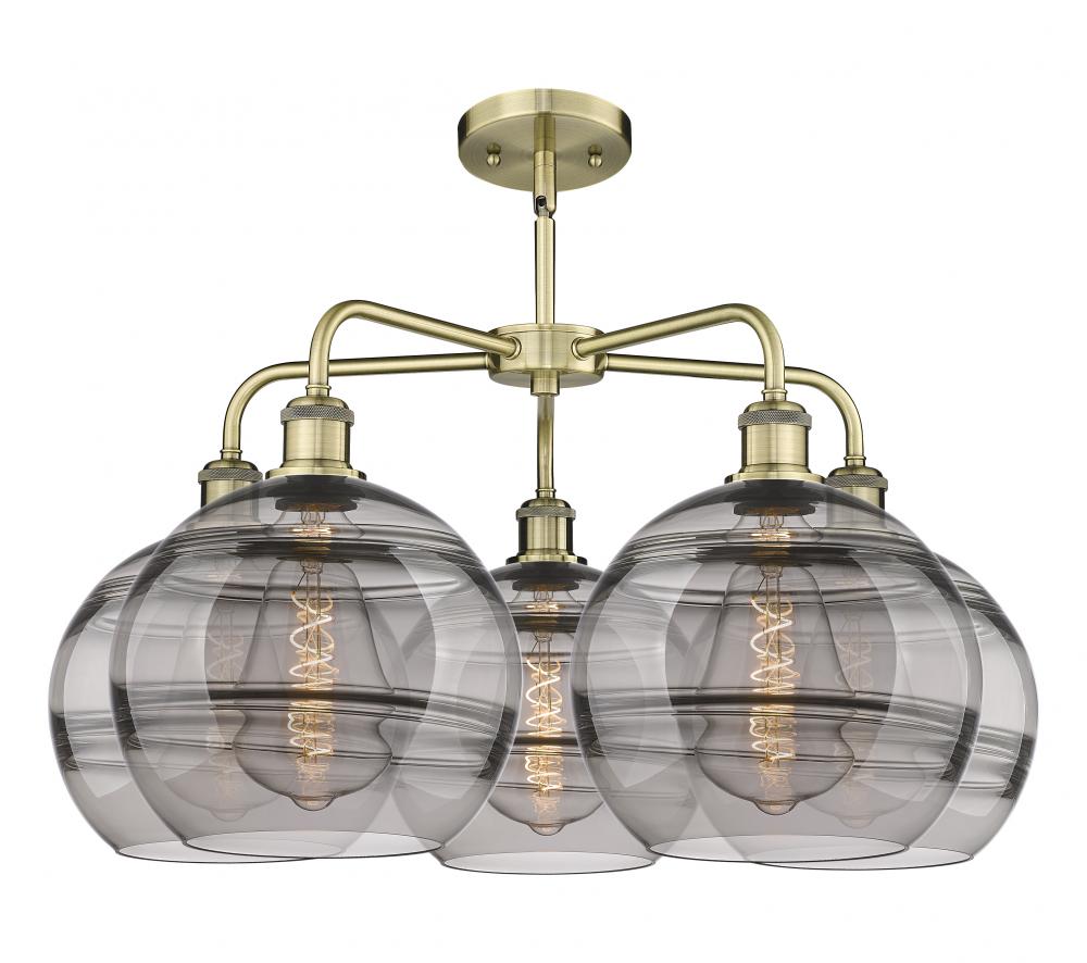Rochester - 5 Light - 28 inch - Antique Brass - Light Smoke Shade - Chandelier