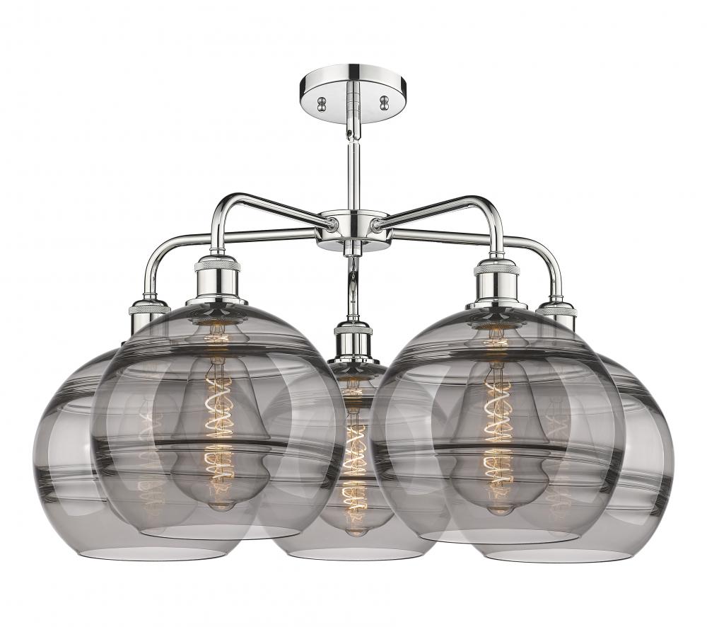 Rochester - 5 Light - 28 inch - Polished Chrome - Light Smoke Shade - Chandelier