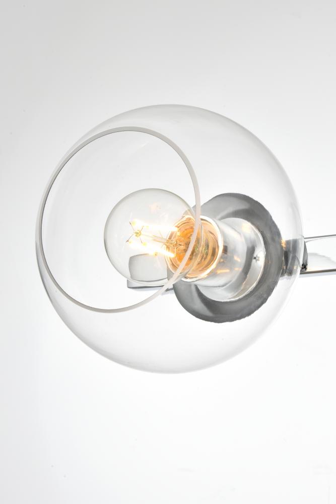 Turn up the brightness in your bathroom with this modern vanity light. This iron fixture features a streamlined silhouette and a smooth finish for a mid-century modern look. The circular backplate connects to one sleek arm design. The arm holds clear glass globe shades that accommodate medium-base bulb up to 40W, which are not included.