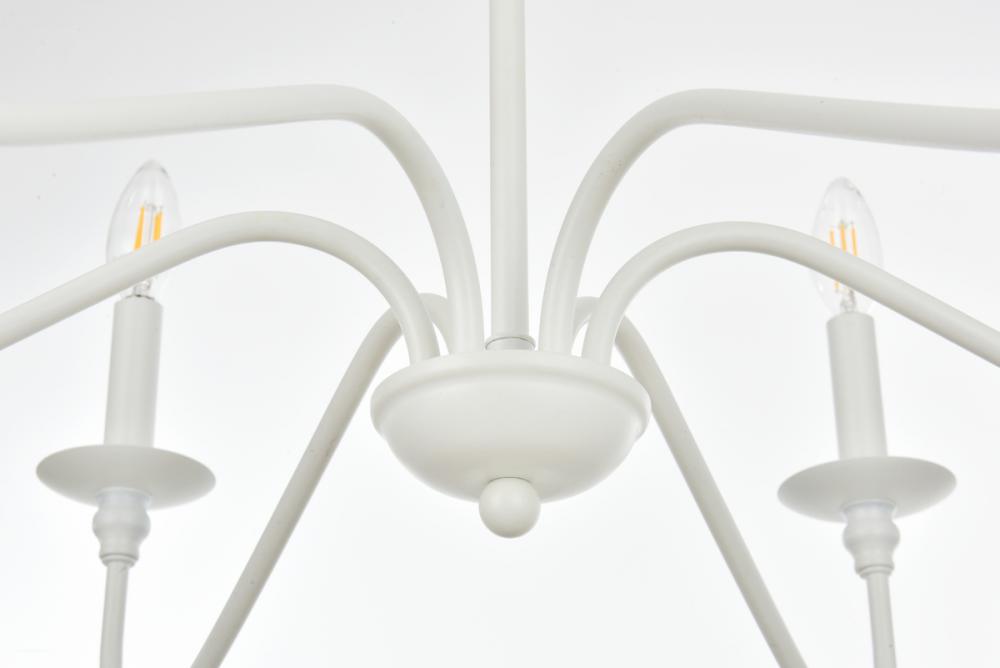 Illuminate your home with the enchanting brilliance of our Indoor Iron 6 Arm Chandelier. This exquisite piece is not just a source of light; it's a statement of elegance and style. The chandelier's dimmable feature allows you to create the perfect ambiance for any occasion, whether it's a romantic dinner or a lively get-together. With a 60-inch matching finish chain included, installation is a breeze, adding convenience to its list of selling points. Versatility is at the heart of this chandelier, as it seamlessly complements various rooms, from grand dining areas to cozy living spaces and captivating foyers. Designed for E12 bulbs, this chandelier accommodates six of them, providing ample illumination throughout the room. Please note that bulbs are not included, allowing you to personalize the lighting experience to your preference. Elevate your interior décor and bask in the captivating radiance of our chandelier that comes in various sizes and finishes.