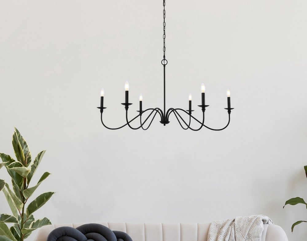 When you need a chandelier to brighten and accentuate a space without visually overpowering it, look to the clean, airy silhouette of the Rohan model. This tastefully simple fixture is Noteworthy for its understated beauty in a relatively large 48 inch span, with six gracefully undulating arms reaching wide to support petite bobèches and candelabra-style stems (bulbs Not included).