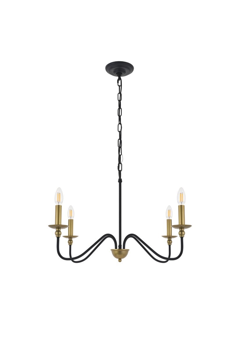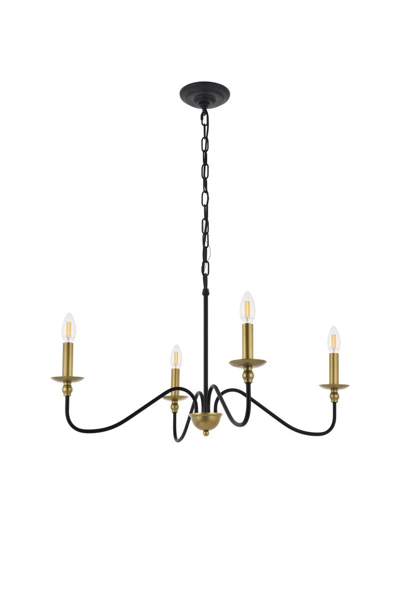 Minimalistic two-toned brass and black chandelier pendant with 4 gently undulating arms and lights