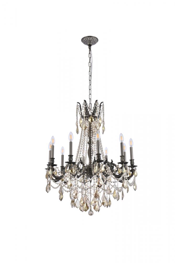 Rosalia 10 light Pewter Chandelier Golden Teak (Smoky) Royal Cut Crystal