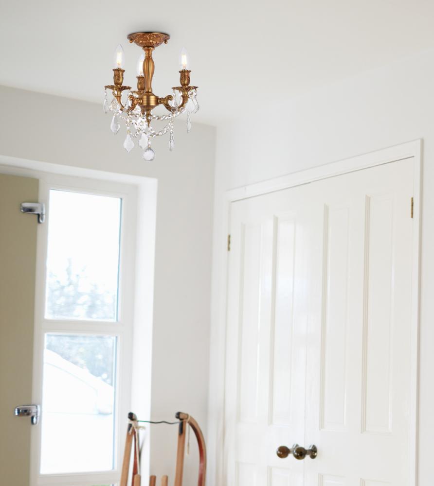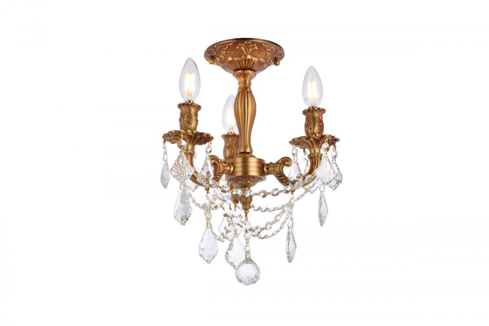 Rosalia 3 light French Gold Flush Mount Clear Royal Cut Crystal