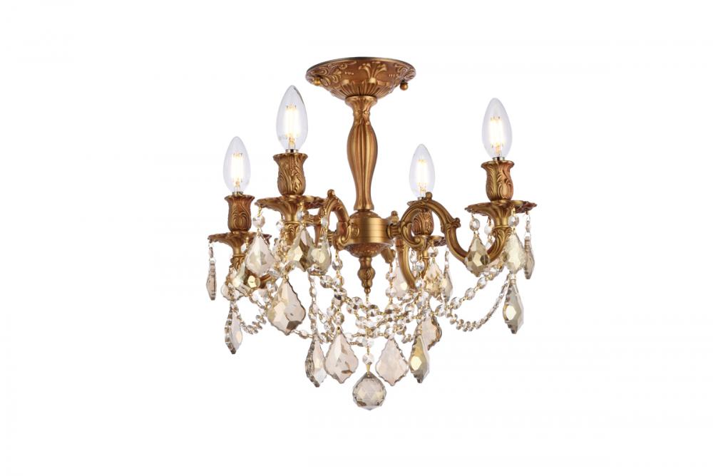 Rosalia 4 light French Gold Flush Mount Golden Teak (Smoky) Royal Cut Crystal