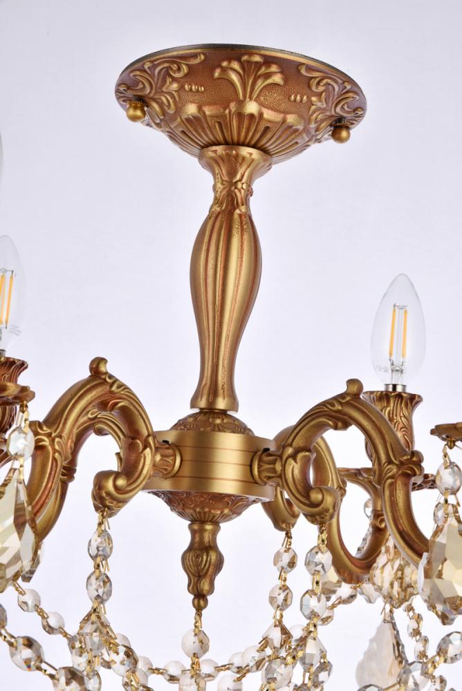 Rosalia collection flush mount lamps bring the decadence and splendor of Austro-Hungarian royalty into your home. An empire-style frame with curved stylized arms bears exposed bulbs (not included) above while strands of draped octagon crystals and precision-cut crystal pendeloques shimmer below. Available in bold finishes (dark bronze, French gold, and pewter) that hint at the design’s vintage-inspired origins, and with clear or golden-teak crystals, your guests will appreciate the royal treatment. Splendid in a dining room, stairwell, or living room.