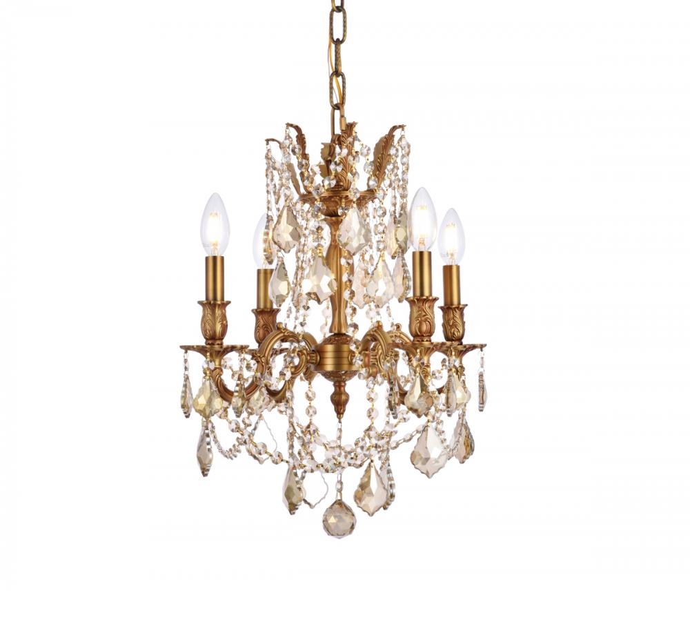 Rosalia 4 light French Gold Pendant Golden Teak (Smoky) Royal Cut Crystal
