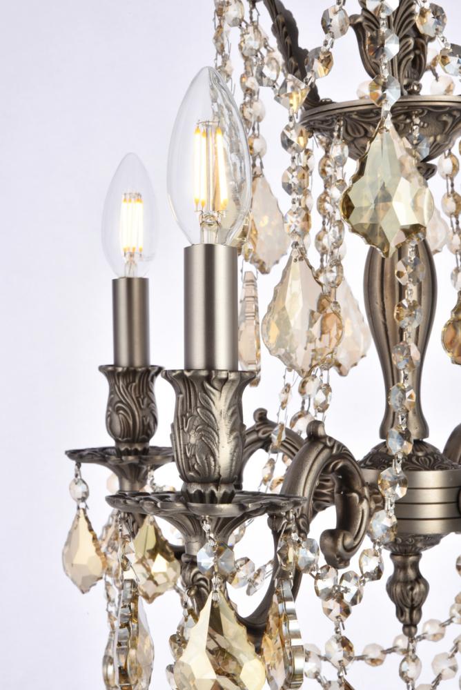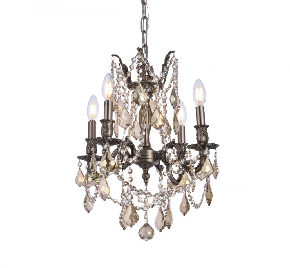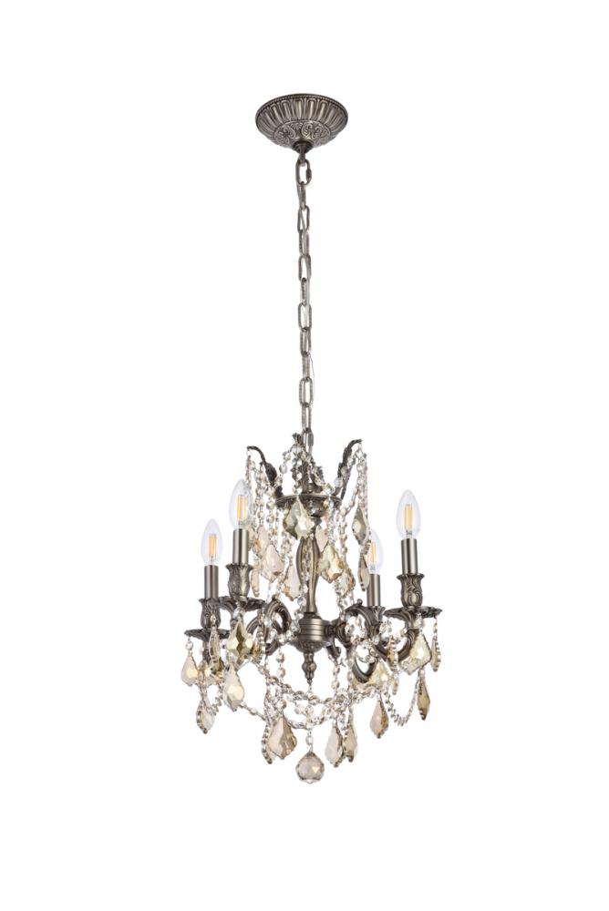 Rosalia 4 light Pewter Pendant Golden Teak (Smoky) Royal Cut Crystal